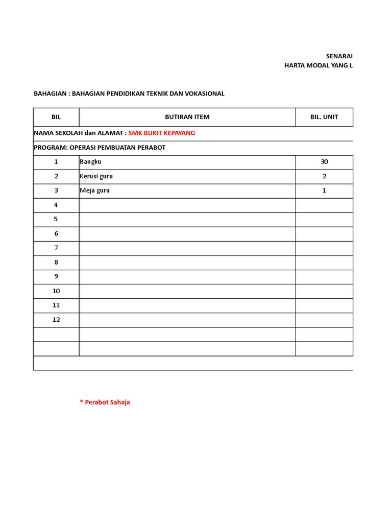 Permohonan Perabot Pvma Smk Bukit Kepayang Pdf